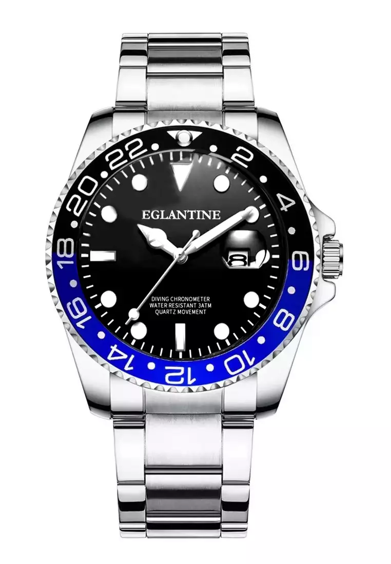 EGLANTINEDiver's Watch, Steel Case and Bracelet, Black Dial, Black & Blue Turning Bezel, Quartz Movement17600.004399.00