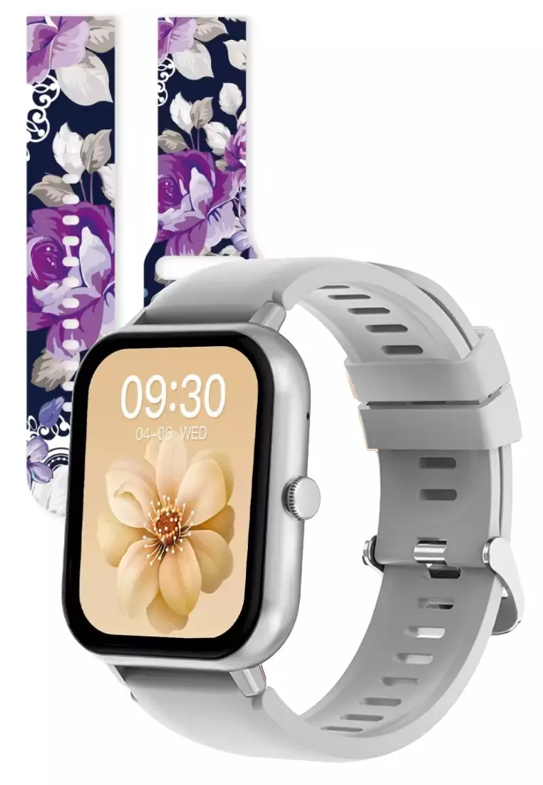 EGLANTINEZalora Special offer - IOS/Android Black SmartWatch with 2 Rubber Straps (Purple Flowers/Grey)13500.003599.00
