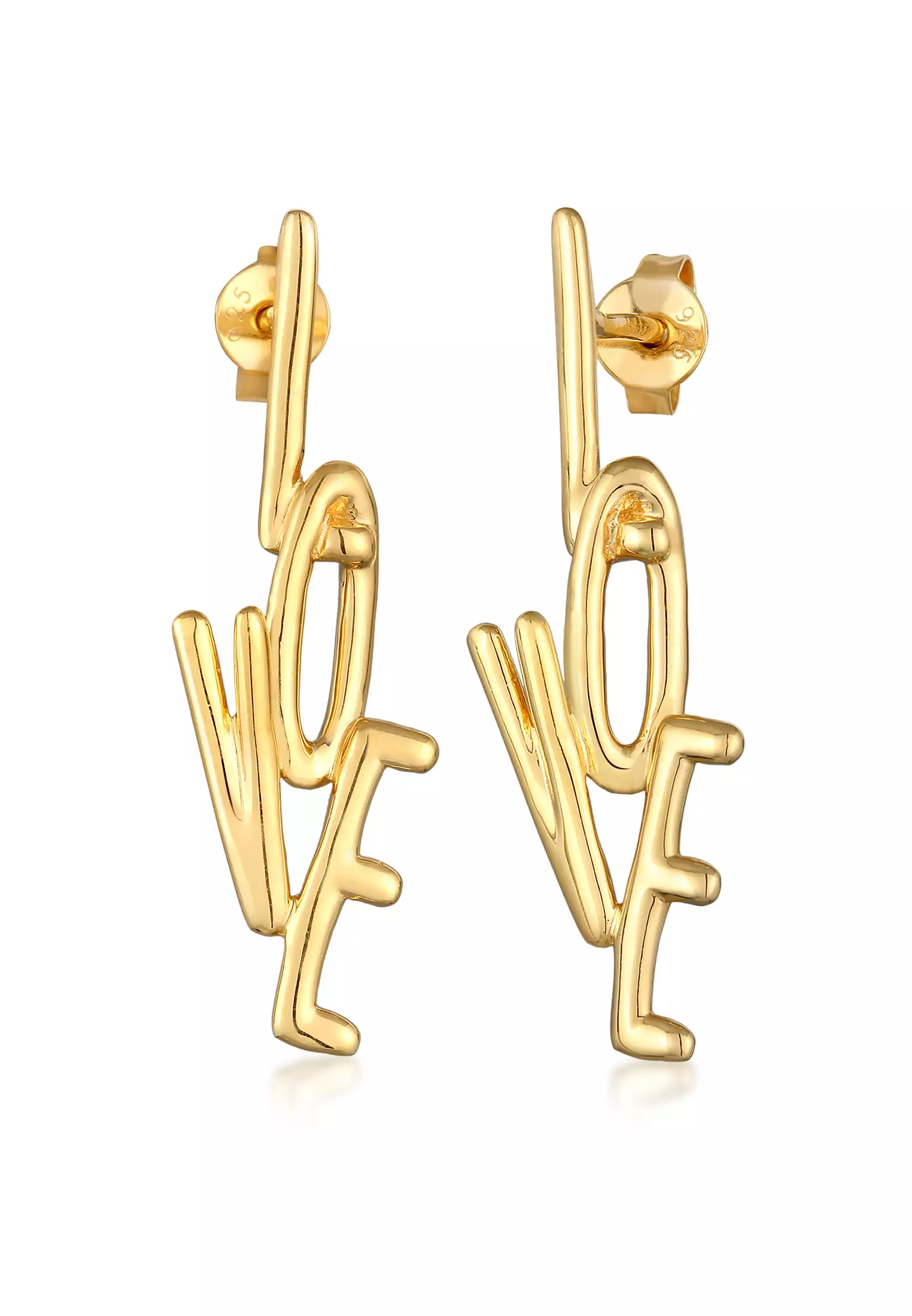 Earrings Stud Love Gold Plated In 925 Sterling Silver