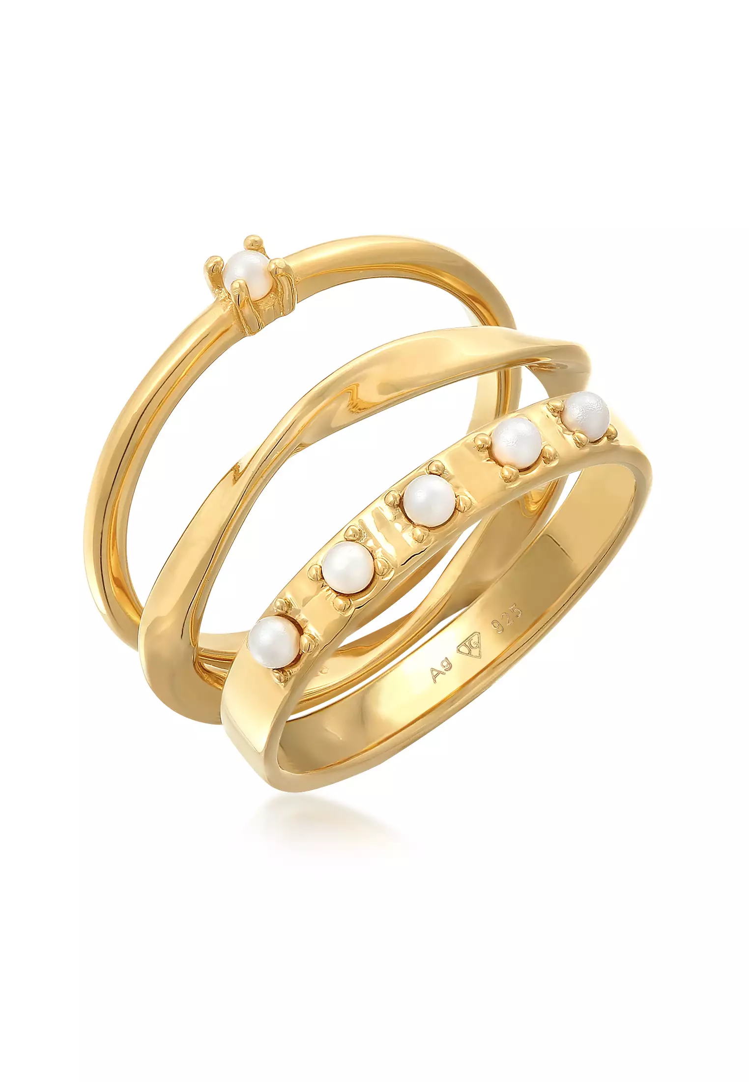 Elli GermanyRing Stack Of 3 Classic Glass Beads Gold Plated2926.00