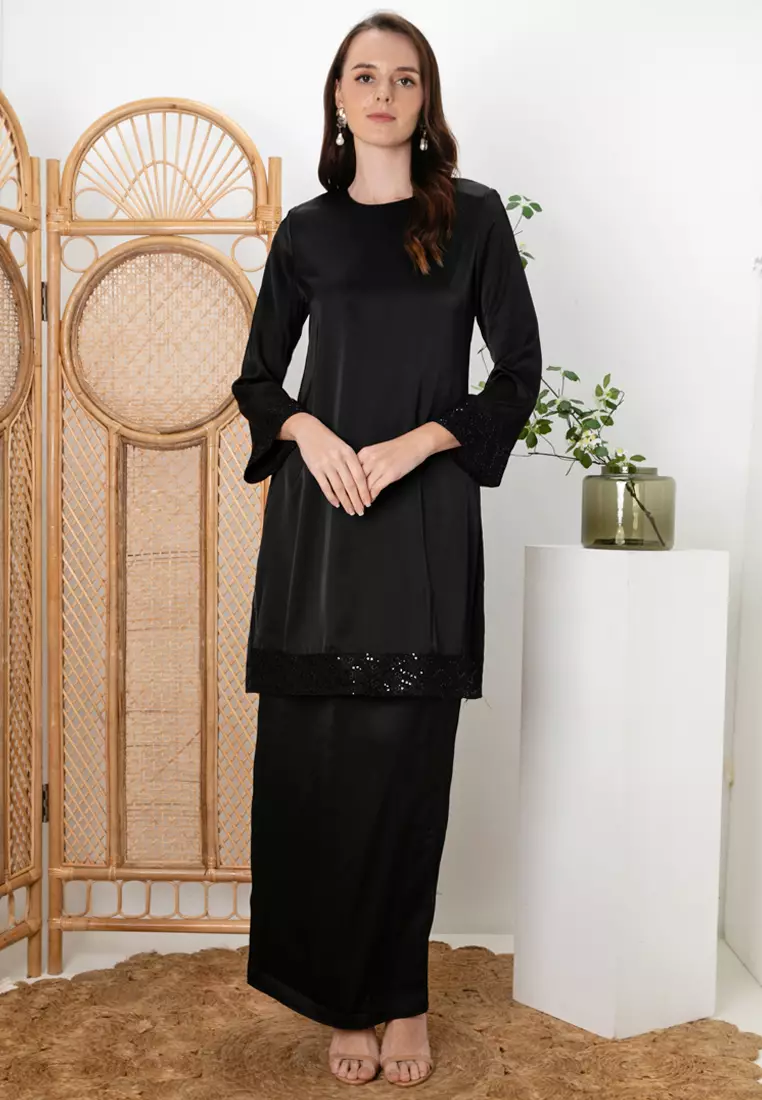 Era MayaMAHARANI Lace Sequin Baju Kurung Pahang Kipas Belakang in Black3999.00