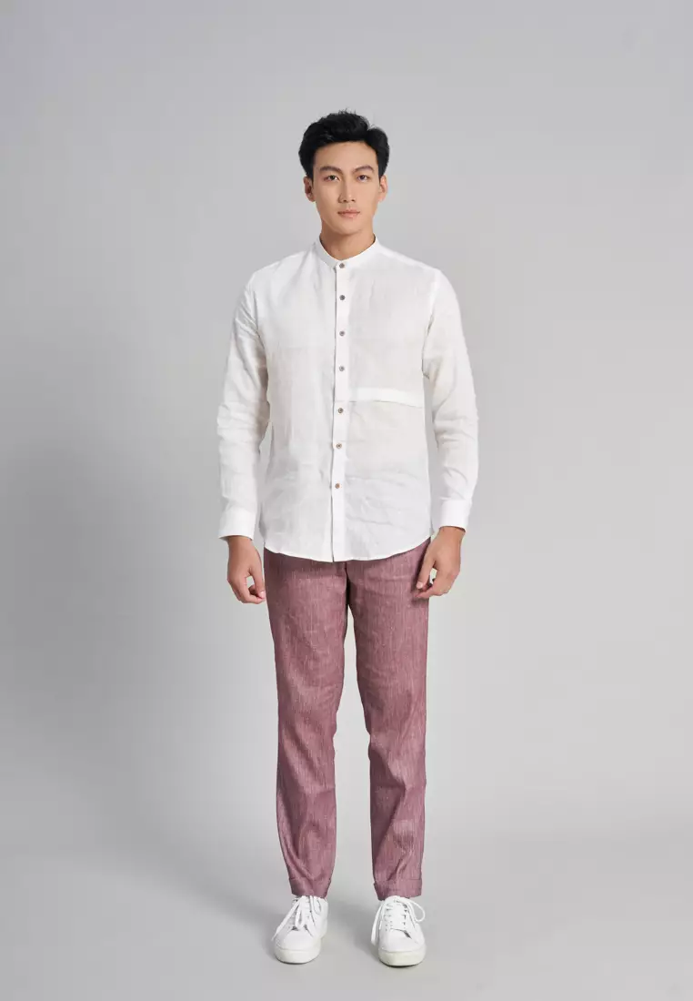 - Neck: Mandarin collar