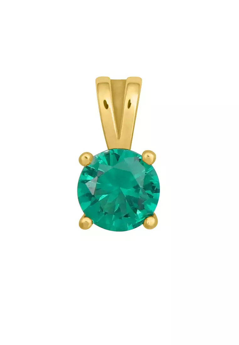 Birthstone Round Pendant- (May) Emerald Colored Cubic Zirconia 18k Gold
