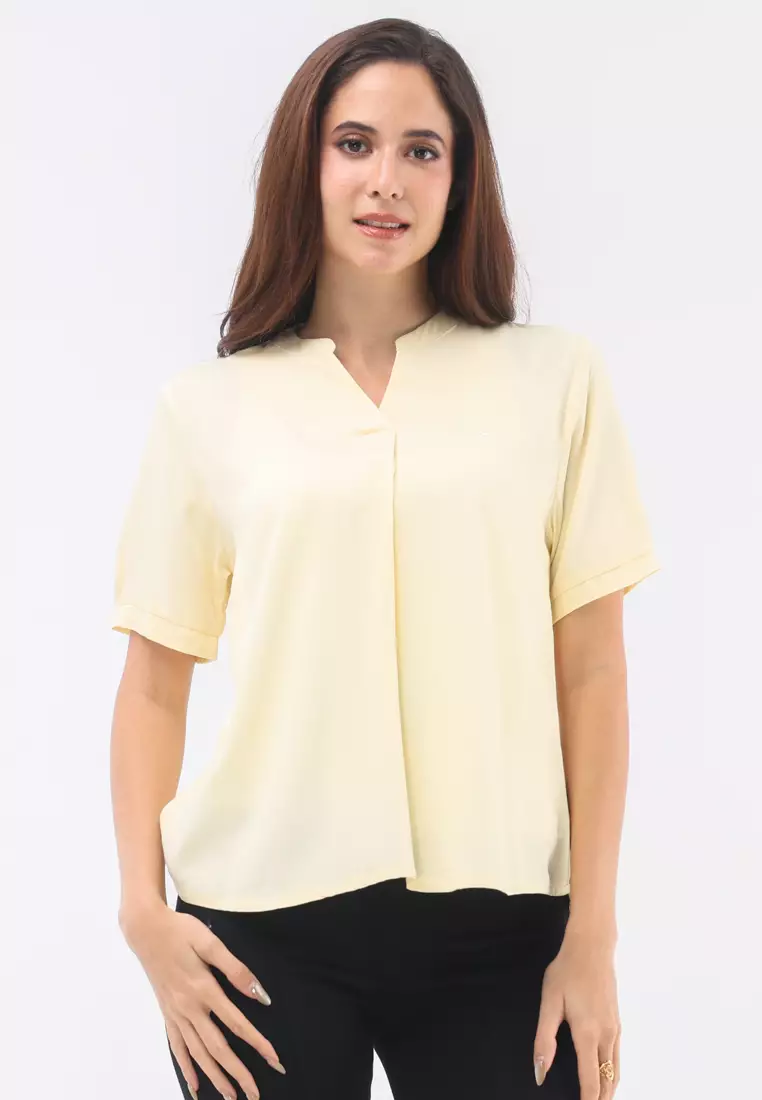 Woven Plain S.Twill Rayon Short Sleeve Blouse