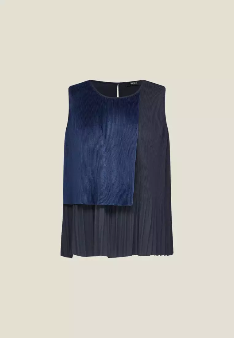 G2000 Sleeveless Gradient Pleat Puff Shoulder Blouse