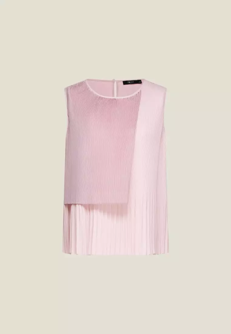 G2000 Sleeveless Gradient Pleat Puff Shoulder Blouse