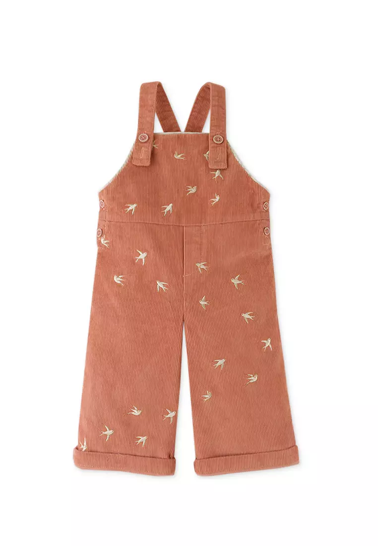 Baby Girls Corduroy Jumper With Brid Embroidery