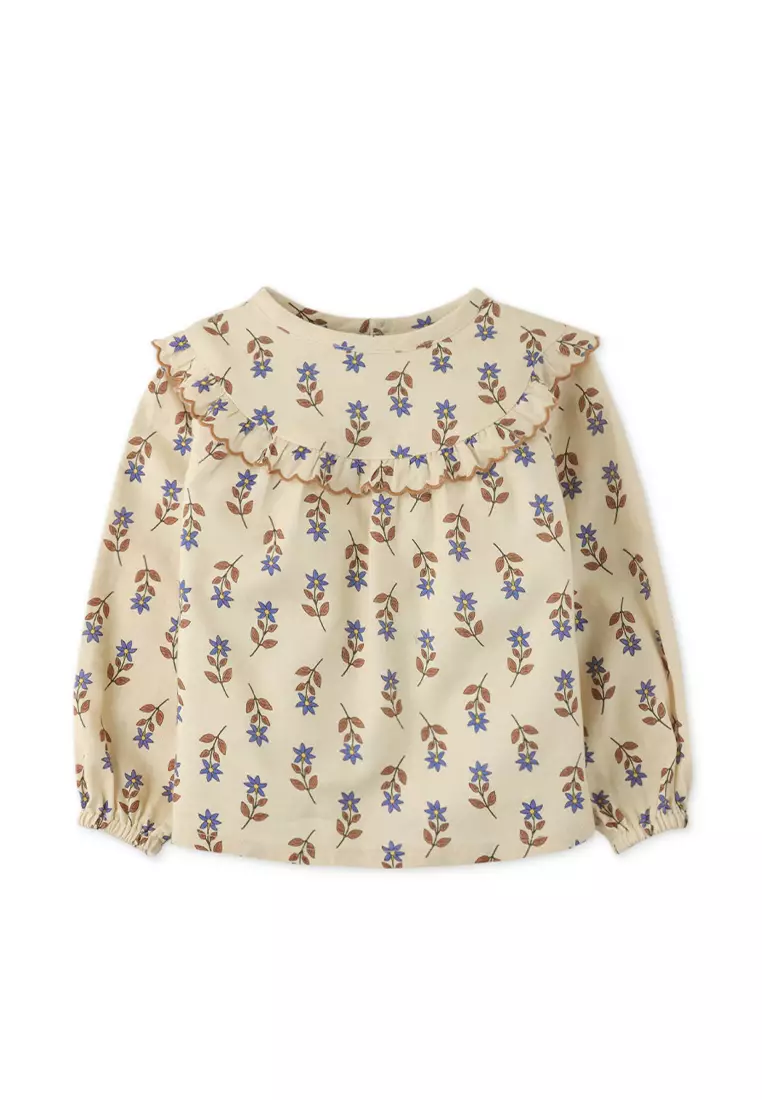Baby Girls Floral Blouse With Scallop Detail And Contrast Embro