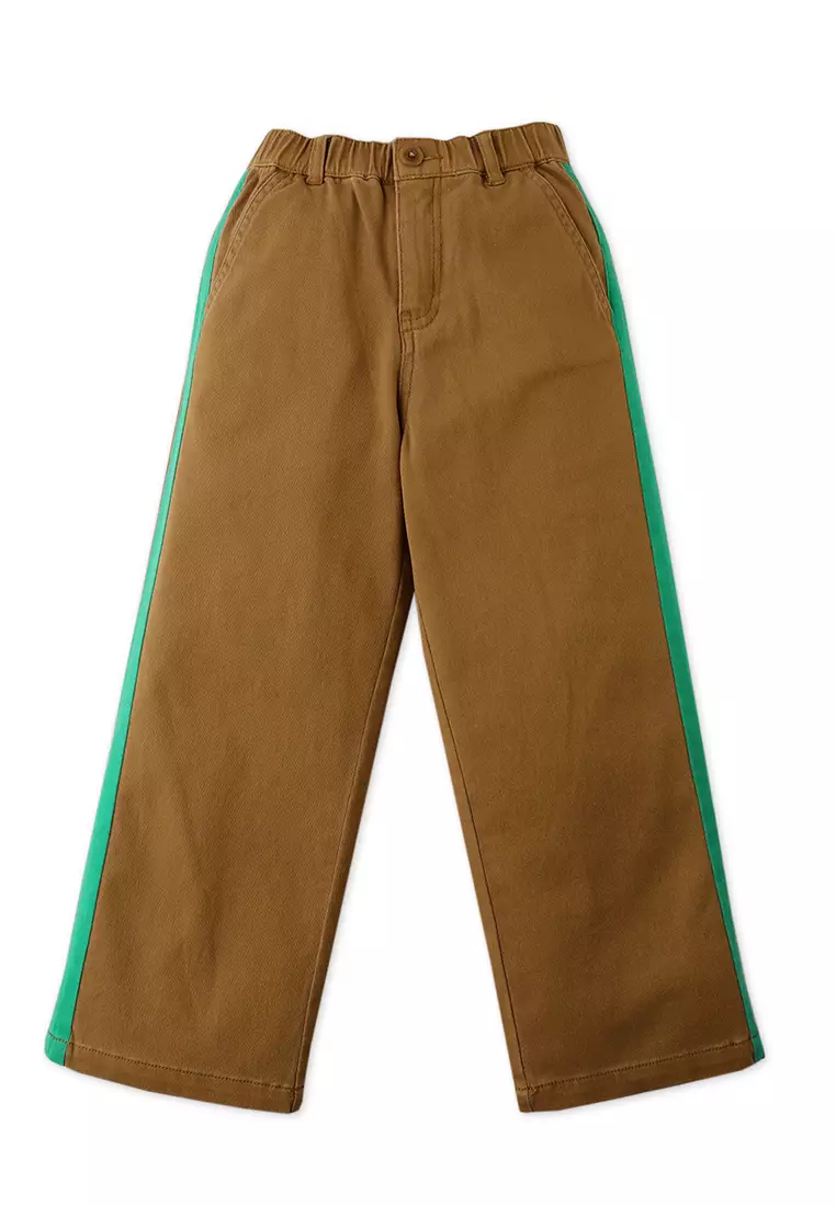 Boys Walter Straight Leg Utility Pants In Brown With Side Stripes