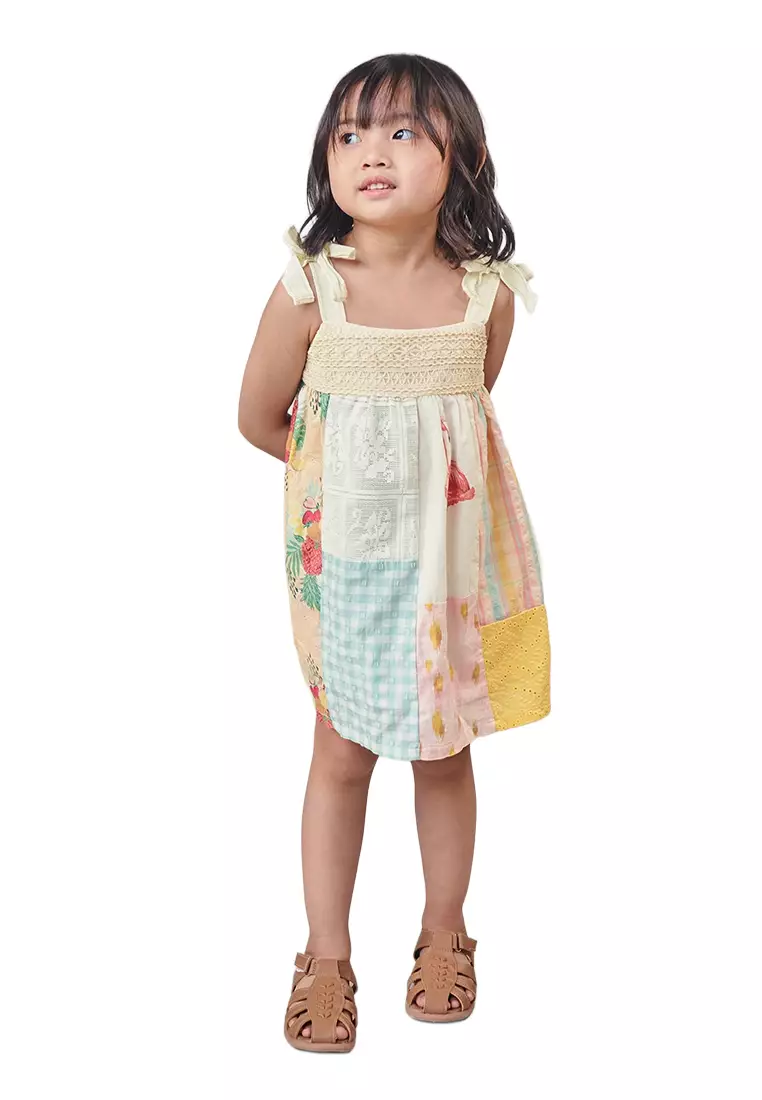 Frankie Patchwork Baby Doll Dress With Cotton Tie Straps