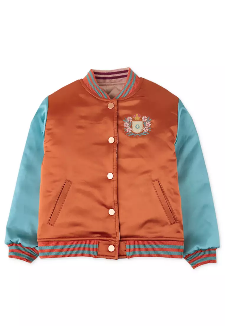 Girls Wadded Reversible Baseball Jacket With Embro