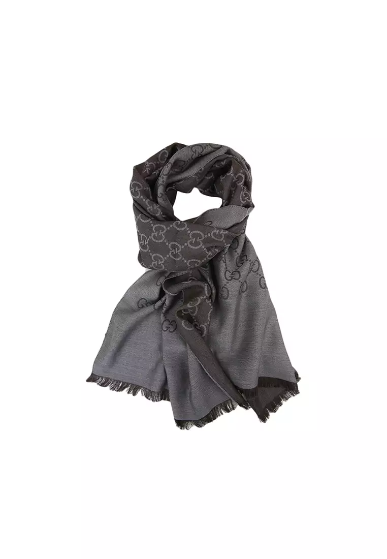 GucciGG Logo Wool Silk Scarf in Dark Grey 165904 3G64631072.0016372.00