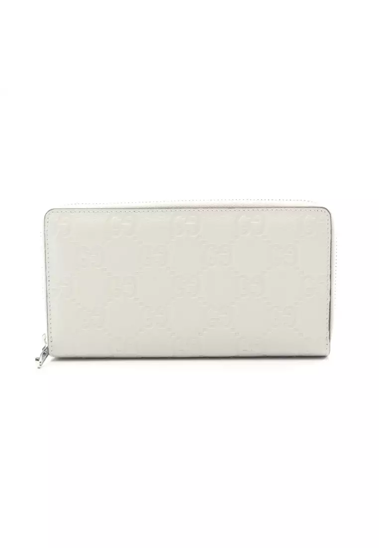 GucciPre-Loved Gucci gucci Imprint round zipper long wallet leather Light gray Japan limited81726.00