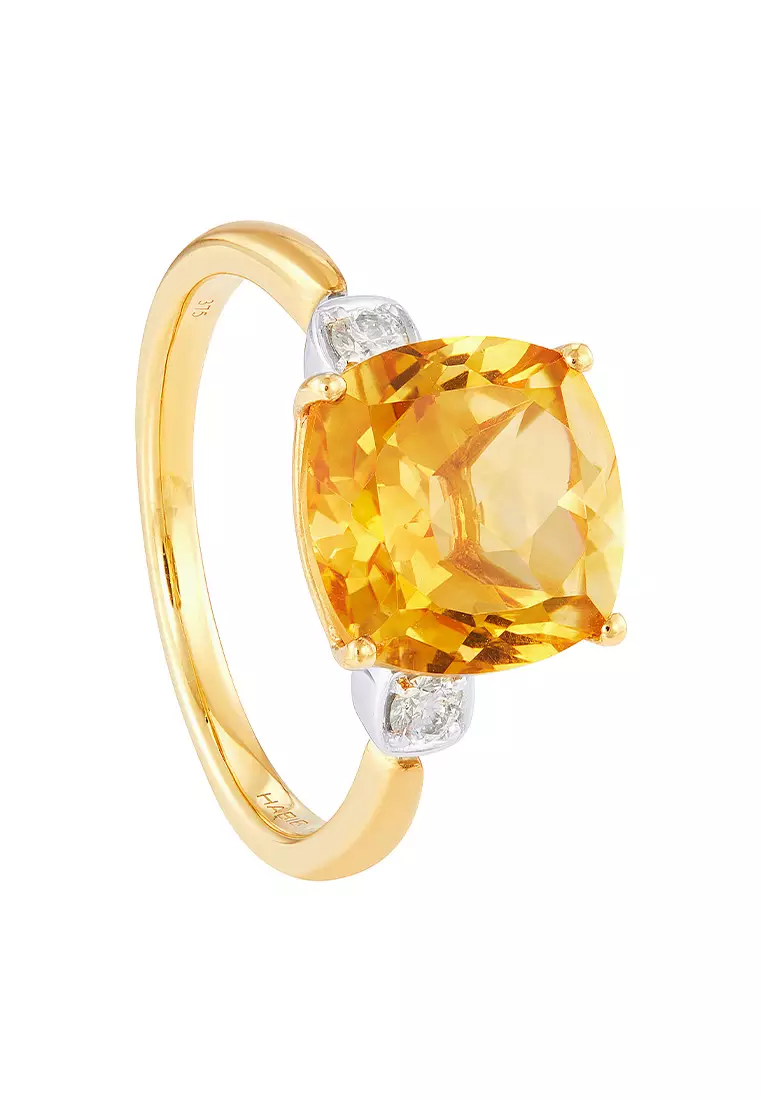 HABIBHABIB Cushion Cut Citrine and Diamond Ring in 375/9K Yellow and White Gold 260490321(R)25100.00