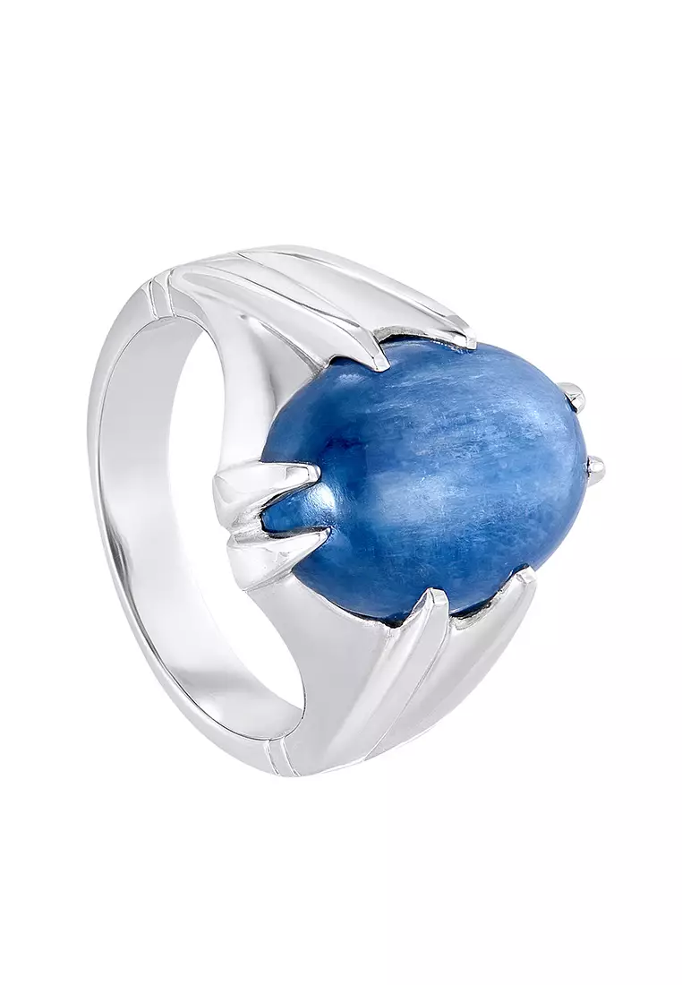 HABIB Oval Cut Blue Kyanite Men's Ring in 925 Silver Palladium A0529(PLD)-KYCB