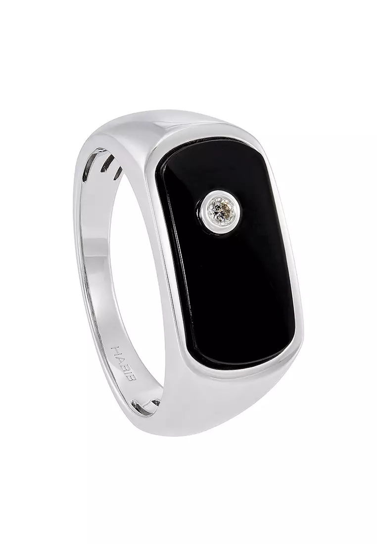 HABIB Rectangular Black Agate and Diamond Men's Ring in 925 Silver Palladium 119780125(PLD)-AGATE
