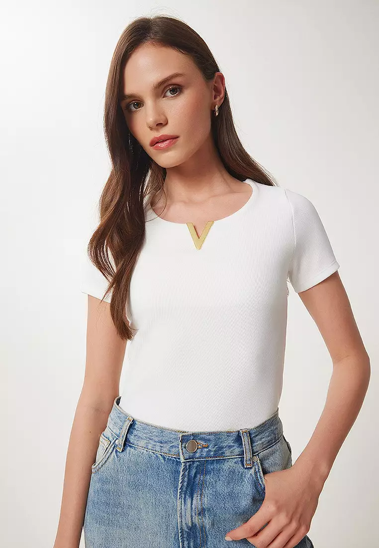 Happiness IstanbulGold Accessory Ribbed Knitted Blouse1319.00731.00