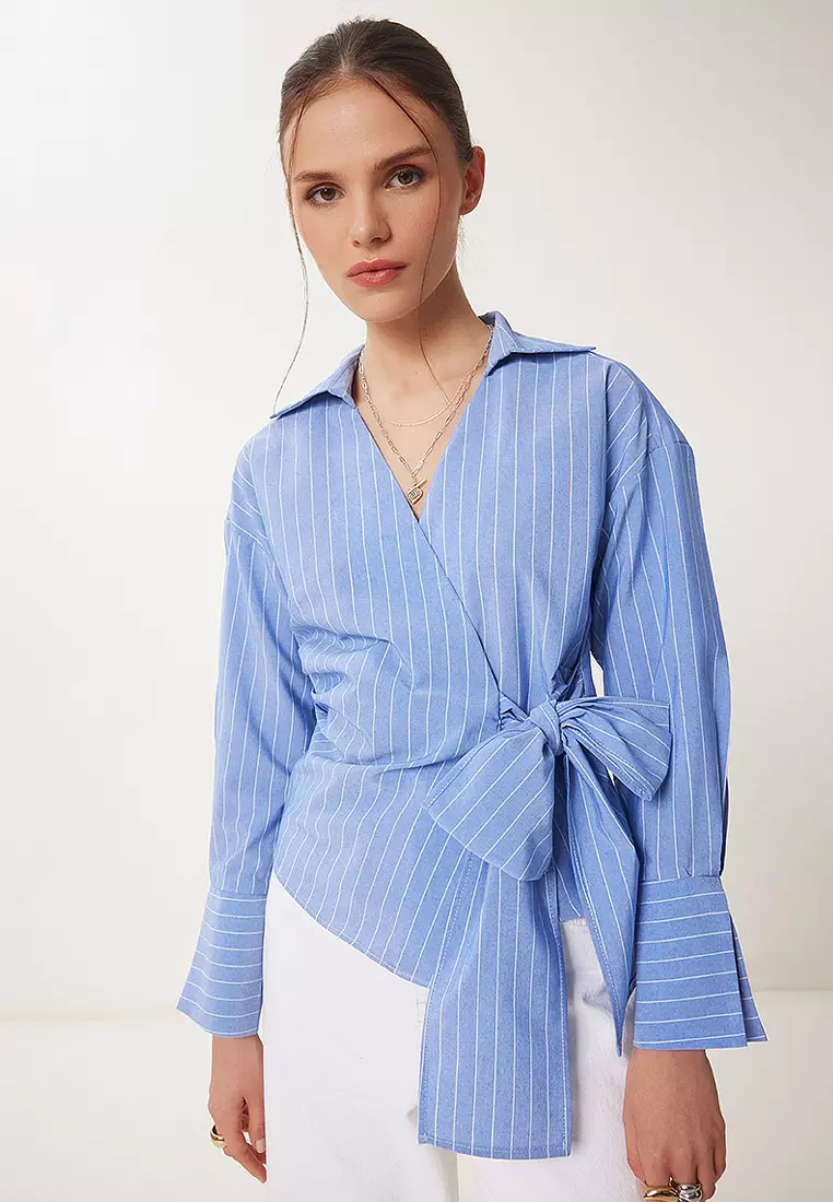 Happiness IstanbulShirt Collar Striped Wrap Poplin Blouse2209.001316.00