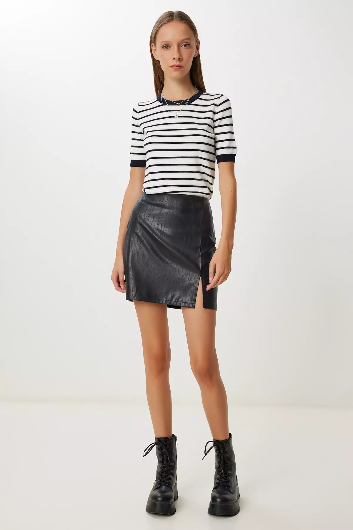 Happiness IstanbulWomen's Black Patterned Slit Mini Faux Leather Skirt Gp000282029.001272.00