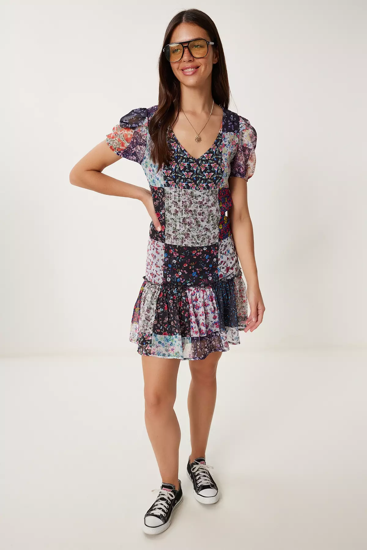 Happiness IstanbulWomen's Black Pink Ethnic Patterned Summer Chiffon Dress Tp000572449.001497.90