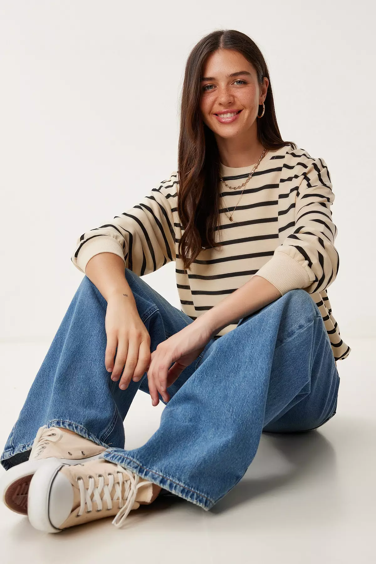 Happiness IstanbulWomen's Cream Black Striped Oversize Knitted Sweatshirt Zv003391349.00967.00