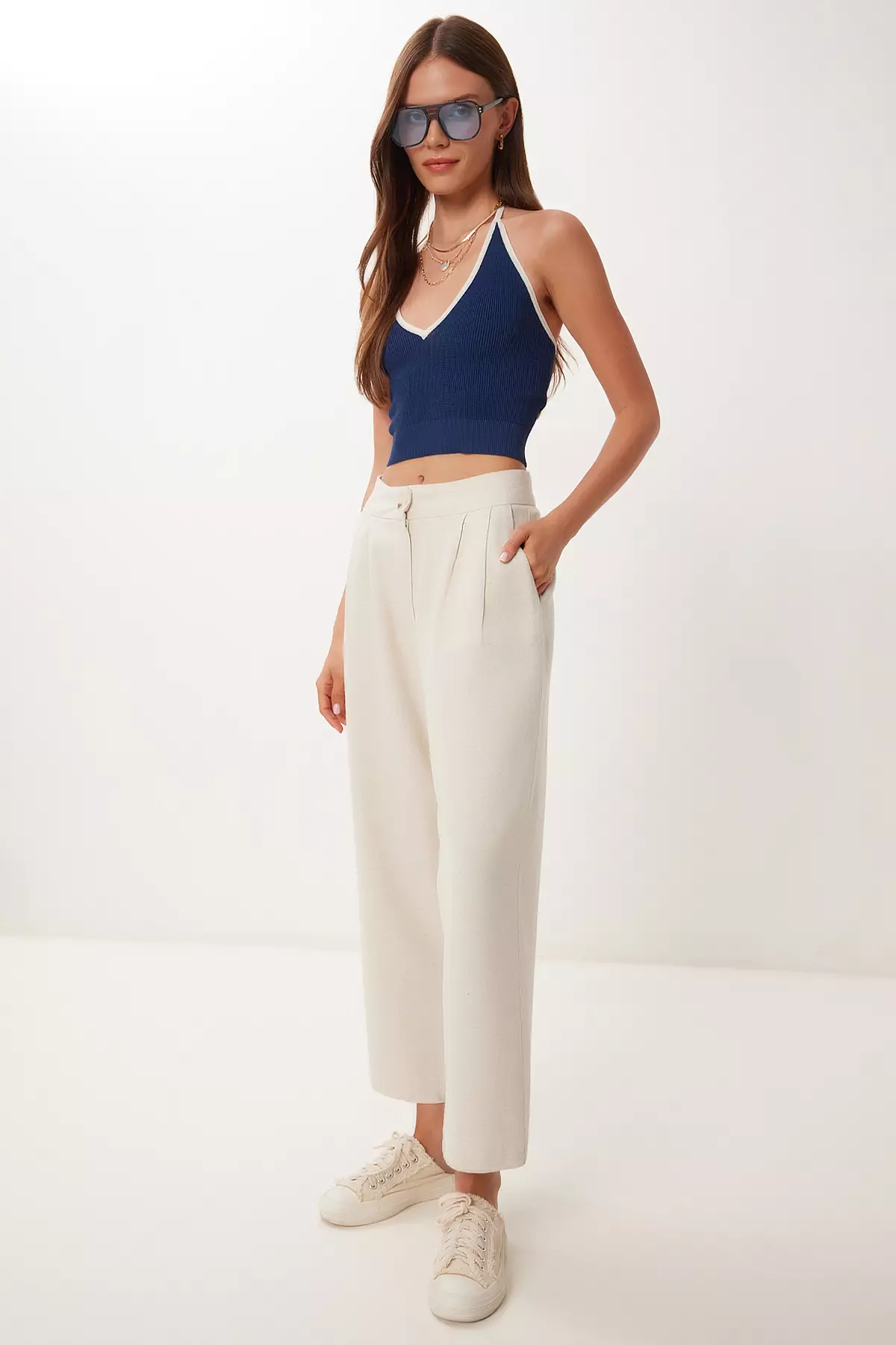 Happiness IstanbulWomen's Cream Pocket Linen Baggy Trousers Bv001642189.001469.00