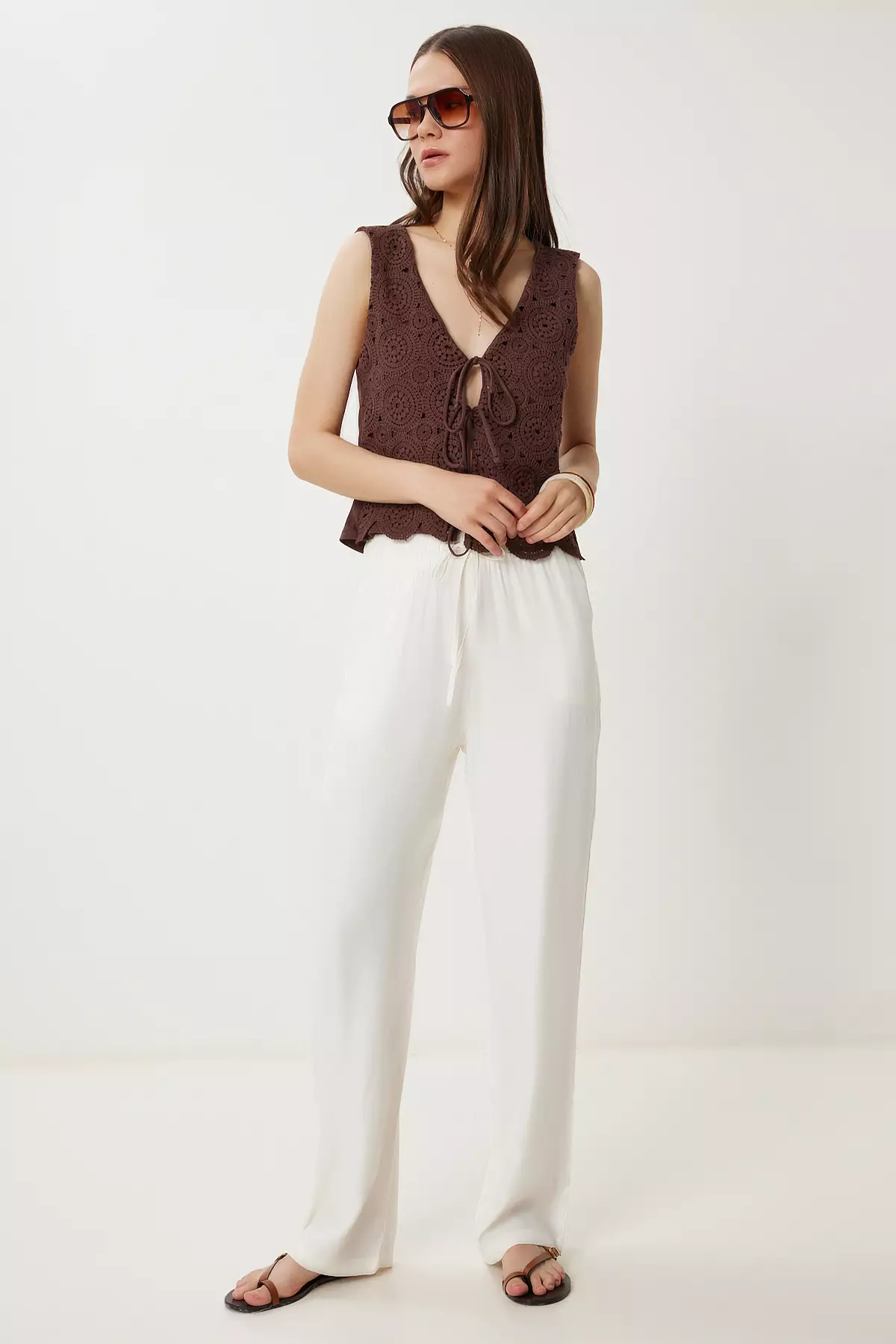 Happiness IstanbulWomen's Ecru Patterned Summer Viscose Trousers Wf001101199.00916.00