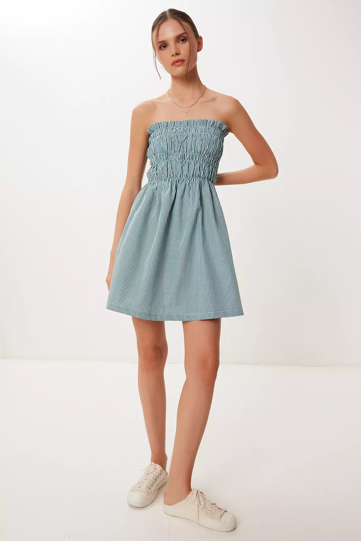 Happiness IstanbulWomen's Green Check Strapless Mini Woven Dress Fk000432409.00