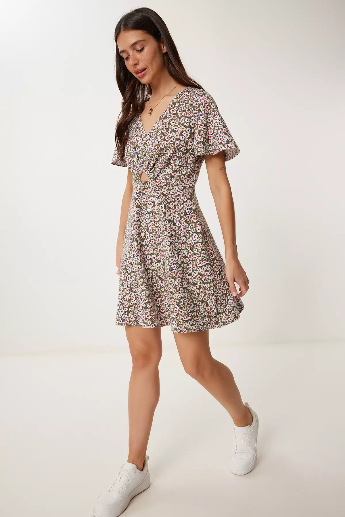 Happiness IstanbulWomen's Khaki Floral Summer Mini Linen Dress Fk000341959.001294.00