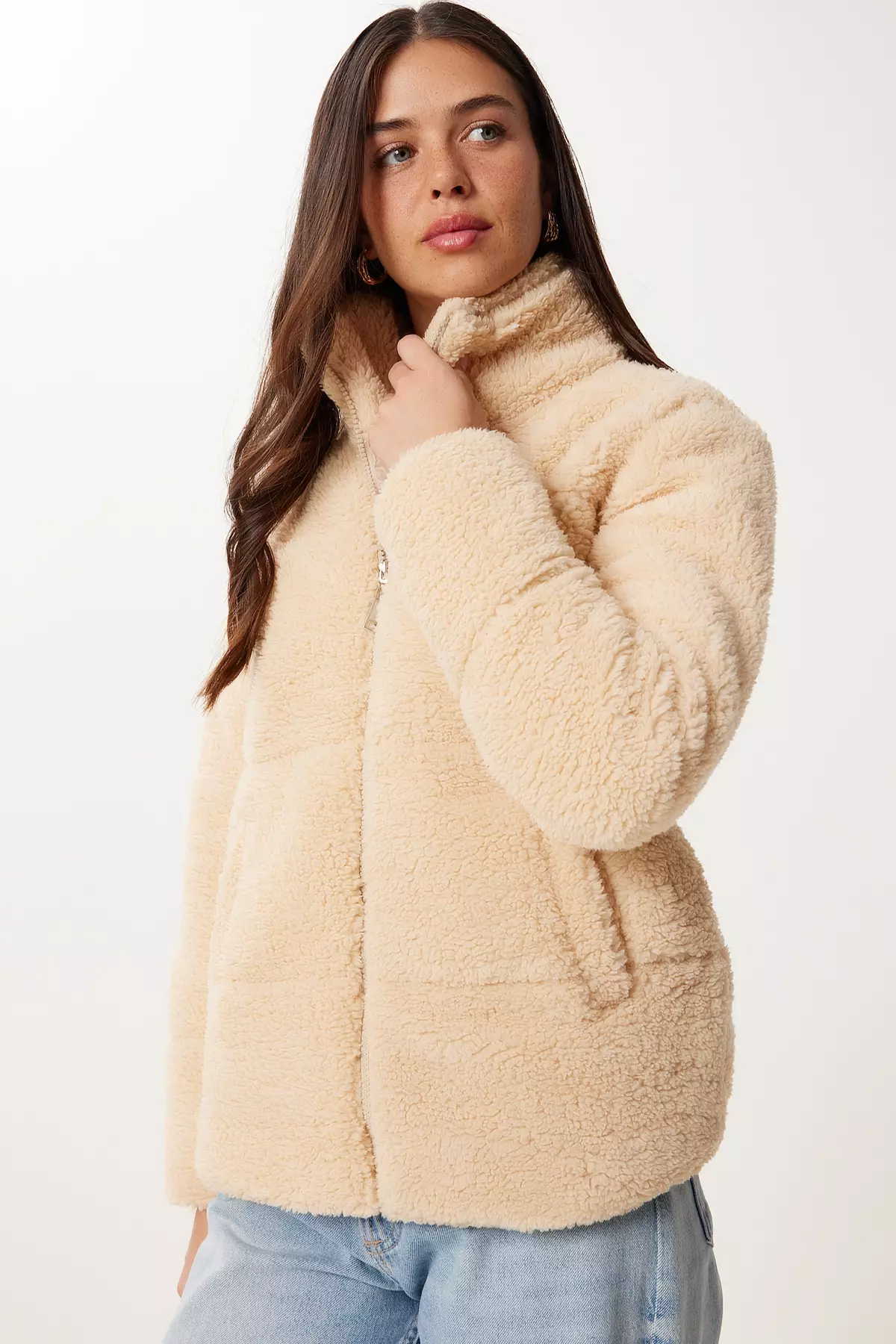 Happiness IstanbulWomen's Latte Soft Textured Plush Coat Dd013704199.00