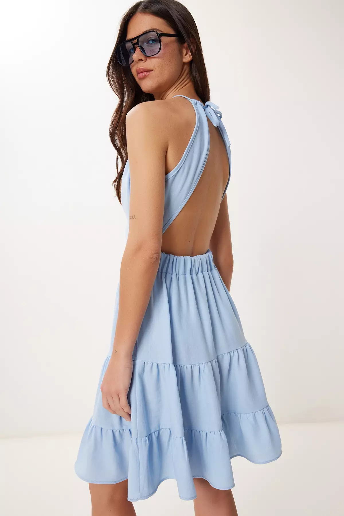 Happiness IstanbulWomen's Sky Blue Linen Blend Light See-Through Summer Knitted Dress Gx000102799.001461.00