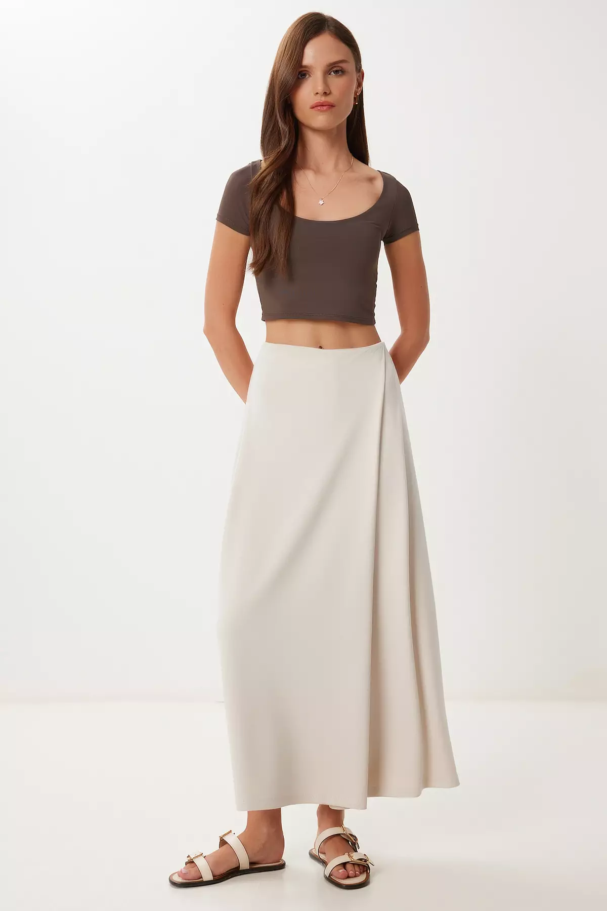 Happiness IstanbulWomen's Stone Skirt Look Flexible Knitted Baggy Trousers Cr005202319.001479.00