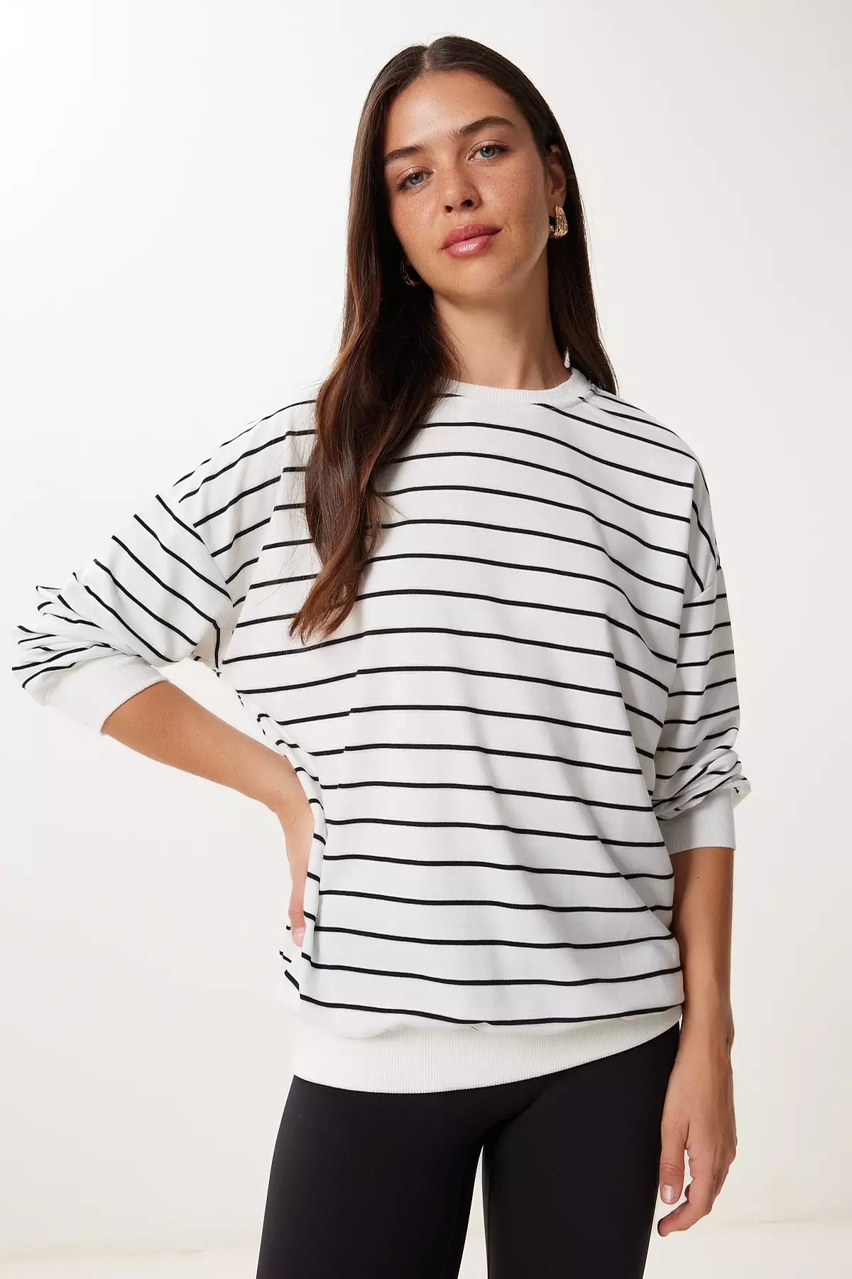 Happiness IstanbulWomen's White Black Striped Oversize Knitted Sweatshirt Zv003391349.00966.00