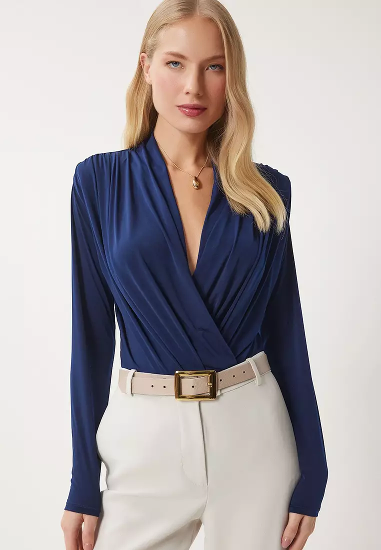 Happiness IstanbulWrap Collar Padded Snap Sandy Blouse1809.001237.00