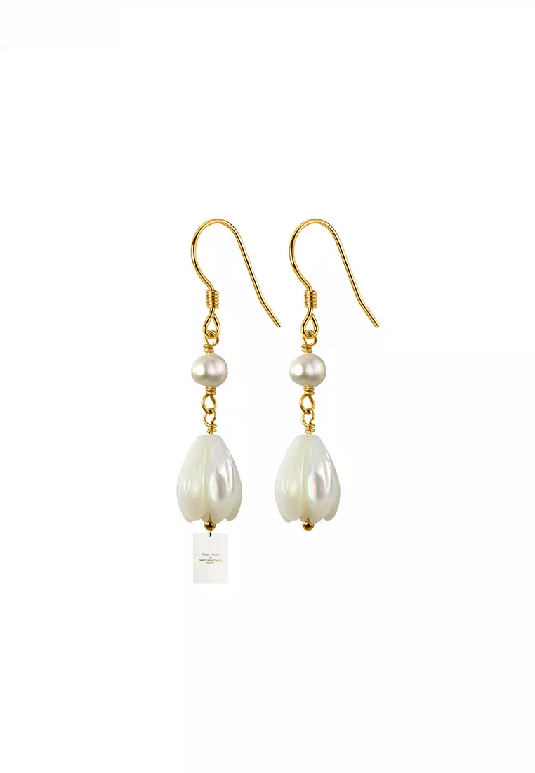 HAPPY FRIDAYS925 Silver Plated Gold Faux Seashell White Magnolia Earrings JW AR-M016482800.002600.00