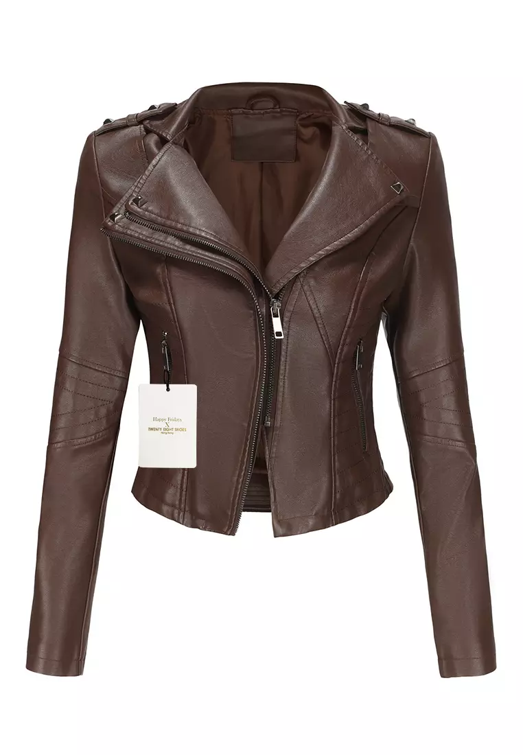 Cropped Faux Leather Jacket AD-D25