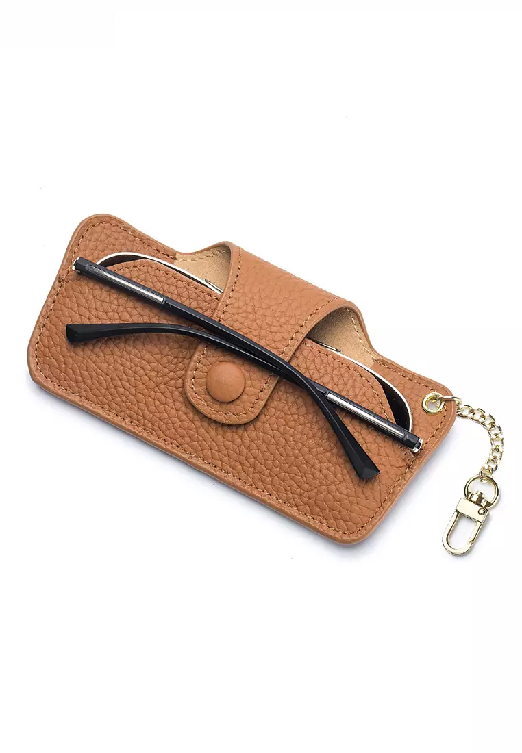 Full Grain Leather Minimalist Snap Button Glasses Case JW AN-9990