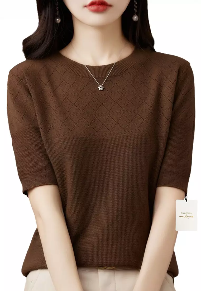 HAPPY FRIDAYSRhombus Hollow Out Pattern Short Sleeve Knit Top JW QT-2912700.002420.00
