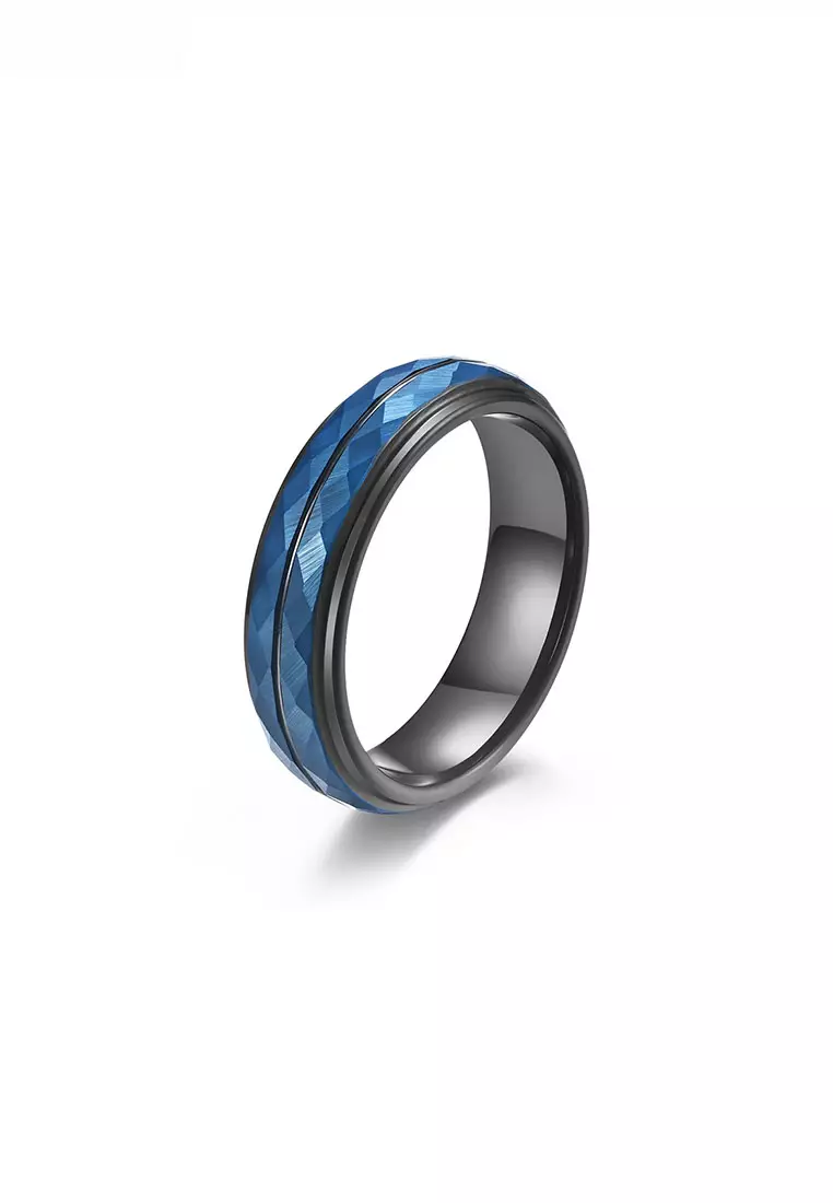 HAPPY FRIDAYSRhombus Surface Blue And Black Matching Tungsten Steel Ring JW QF-0072240.001980.00