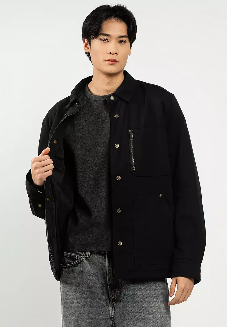60% cotton, 40% polyester heavyweight twill. 100% polyester lining.