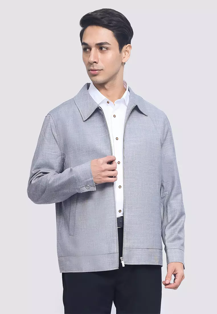 Plain Zip Up Jacket With Pointed Collar