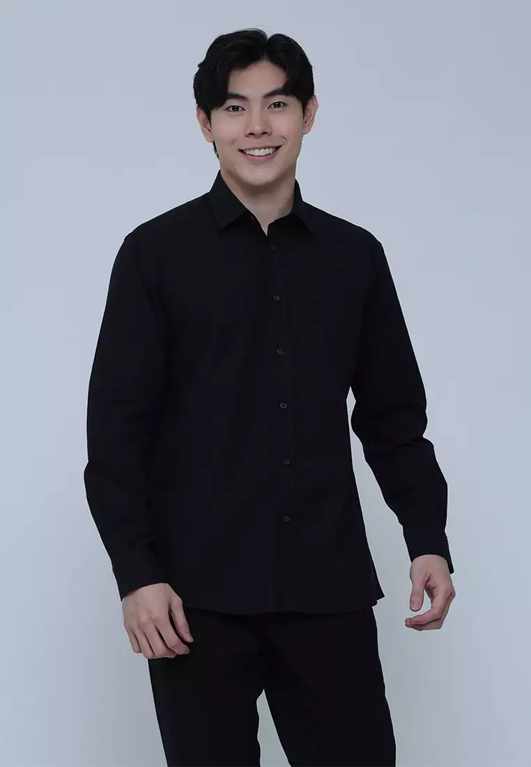 Slim Fit Cotton Long Sleeve Dress Shirt with Trim
