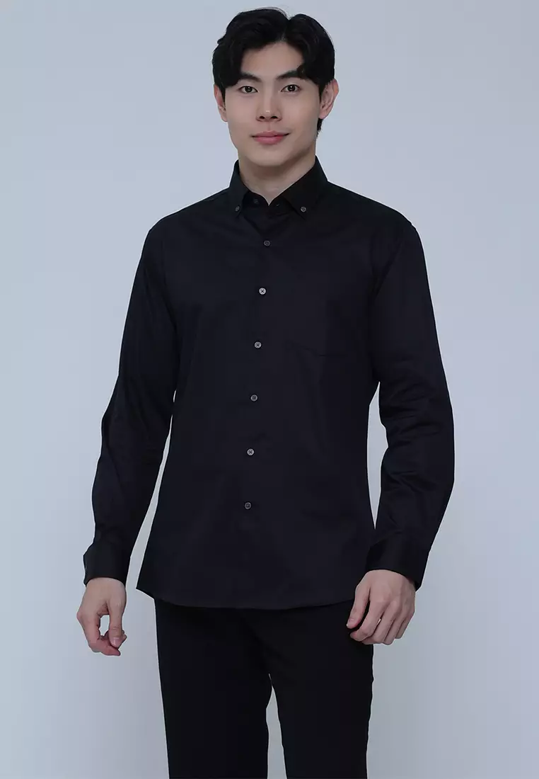 Slim Fit Solid Cotton Long Sleeve Dress Shirt