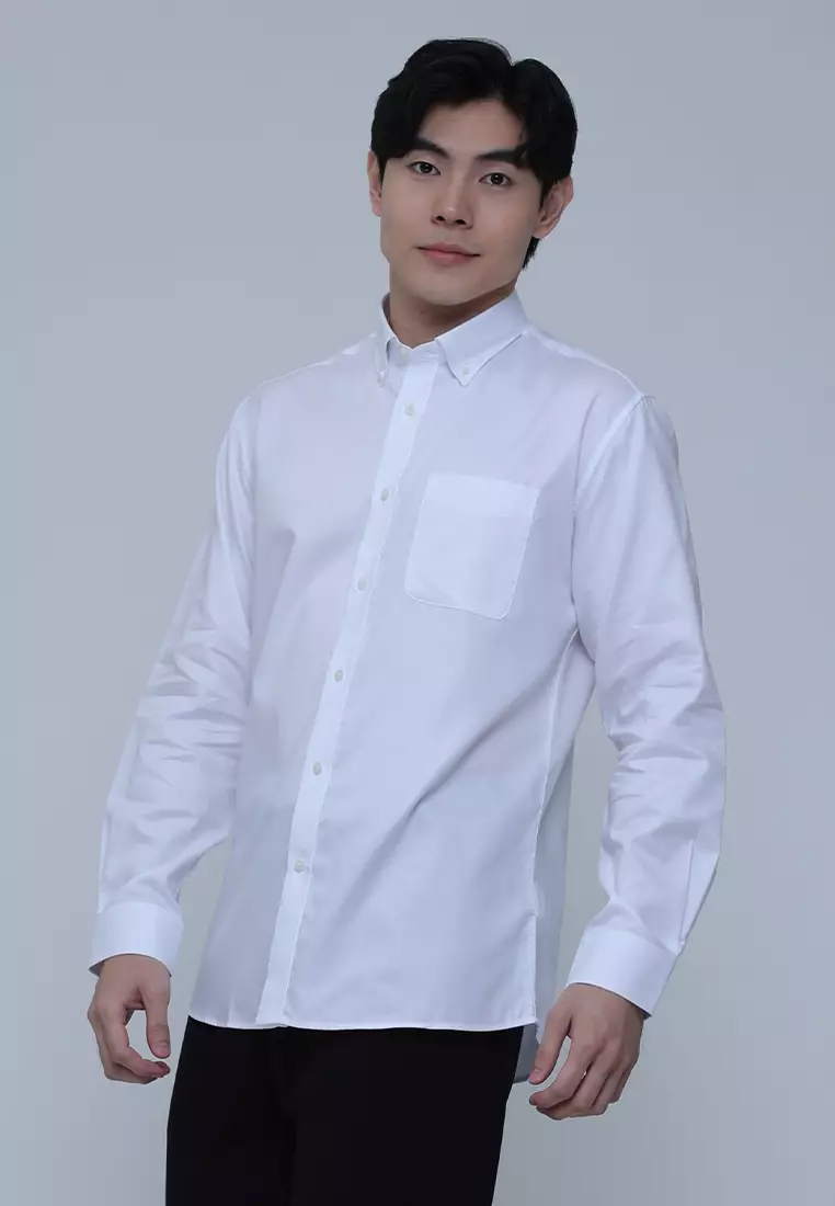 Solid Slim Fit Dress Shirt with Trim