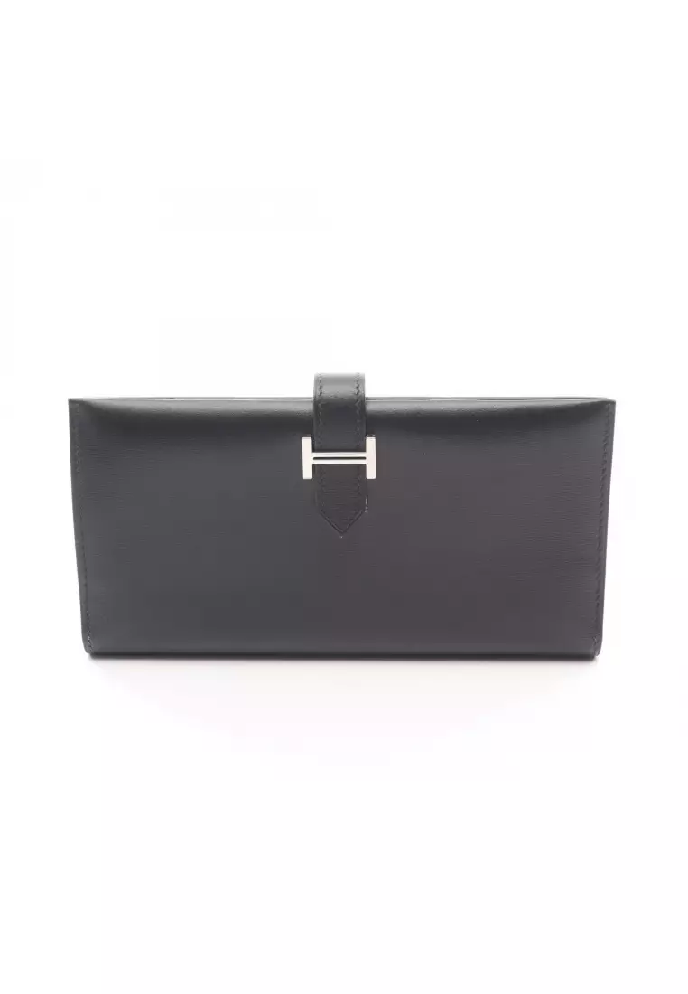 HermèsPre-Loved Hermès bear souffle Bi-fold Long Wallet box calf black silver hardware □H stamp120959.00