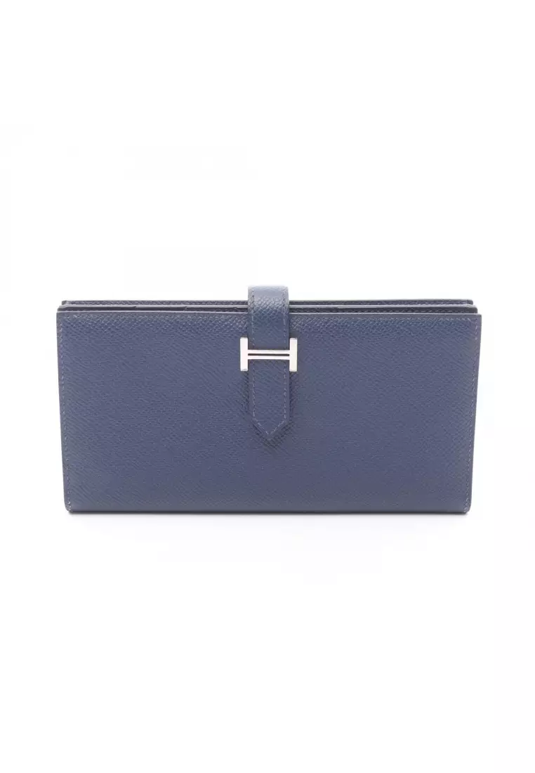HermèsPre-Loved Hermès bear souffle broodmalt Bi-fold Long Wallet Veau epsom dark blue silver hardware B stamp302067.00