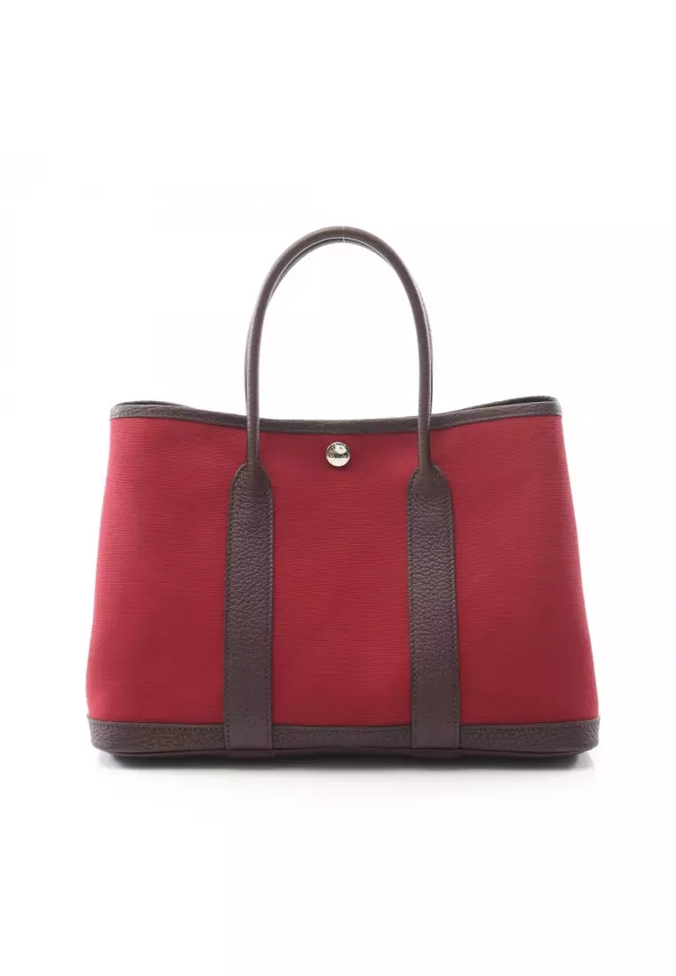 HermèsPre-Loved Hermès garden party TPM Rouge Imperial Rouge Serie Handbag tote bag Toile Officier buffalo Bordeaux Dark brown silver hardware Z stamp406468.00
