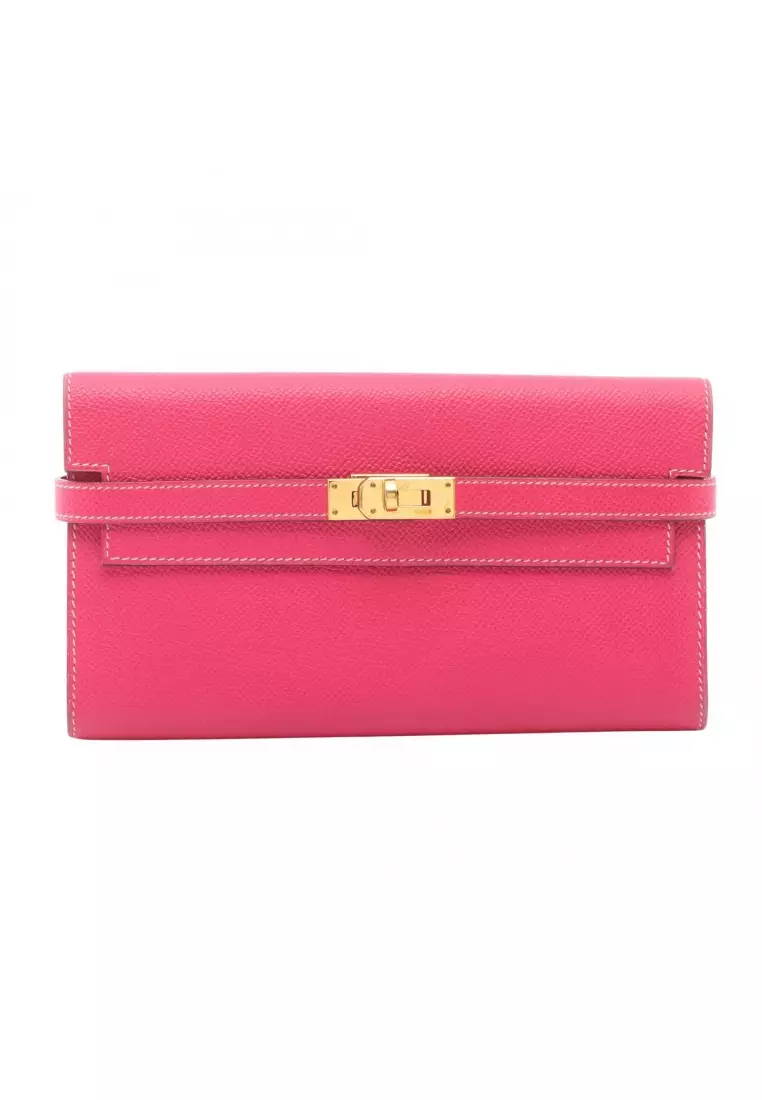 HermèsPre-Loved Hermès kelly wallet long rose tyrian Bi-fold wallet Veau epsom Pink purple gold hardware □Q stamp271296.00