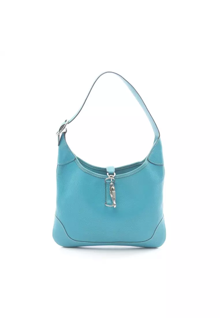 HermèsPre-Loved Hermès Trim 24 one shoulder bag Chevre turquoise blue silver hardware □H stamp239427.00