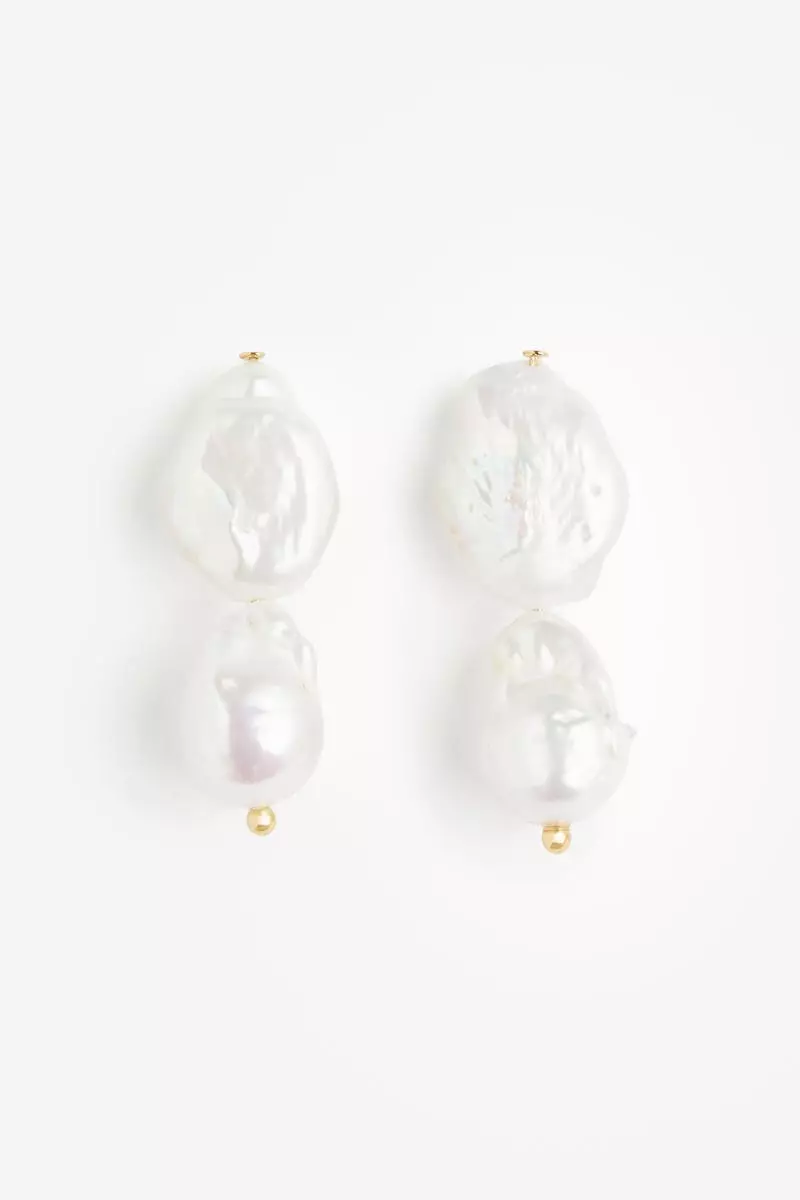 Gold-plated pearl pendant earrings